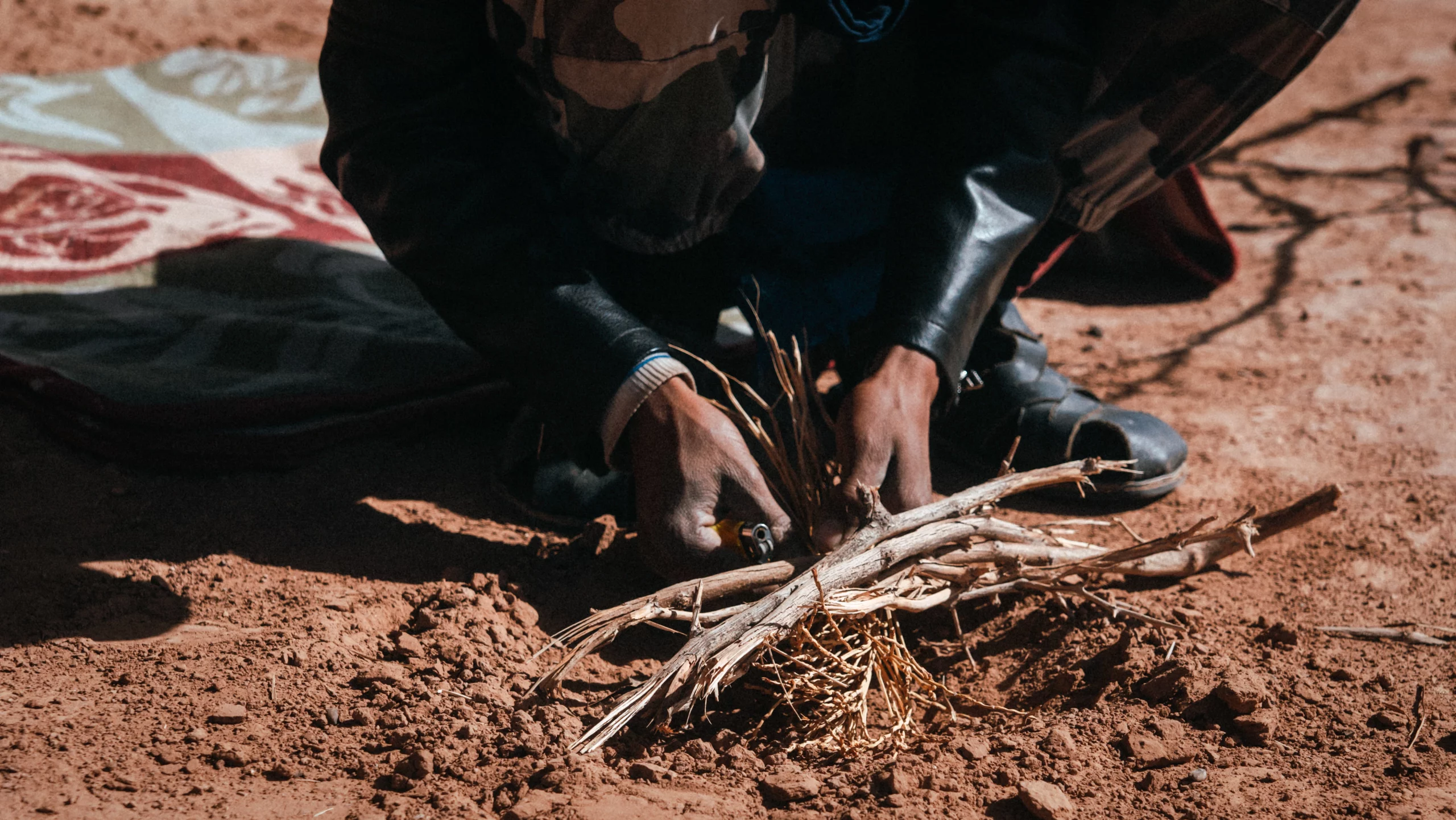 🏕️ Nuitée en bivouac fixe confortable à Mhamid (la veille du départ à pied), incluant dîner et petit-déjeuner.