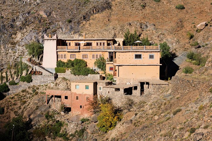 Tras desayunar, iniciaremos la marcha por el valle de Mizane, primero hacia el pueblo de Aremd y luego hacia el santuario de Sidi Chamarouch. Aremd, construido sobre una cresta morrénica que domina el fondo del valle, es el pueblo más grande del valle y ofrece una interesante mezcla de agricultura tradicional en terrazas, casas de huéspedes y calles constantemente atestadas de cabras y ganado. Durante generaciones, los habitantes bereberes locales han trabajado esta tierra, produciendo maíz, patatas y frutos secos en este austero paisaje. Continuando hacia el este a través de la llanura aluvial, nuestra ruta nos lleva por caminos de herradura y hacia los altos acantilados rocosos sobre el valle. Tras cruzar el río, llegamos por fin al santuario pastoral de Sidi Chamarouch, que atrae a turistas y peregrinos por igual (aunque sólo los musulmanes pueden cruzar el puente de piedra para visitar el santuario del propio morabito). El pueblo se encuentra junto a una pequeña cascada, una masa caótica de casas que parecen fundirse unas con otras en una masa anárquica. A partir de aquí, el camino sigue subiendo sin cesar, serpenteando y zigzagueando hasta alcanzar la línea de nieve y el refugio del Toubkal (3207 m), nuestra parada para pasar la noche. Unas 6 horas de marcha.