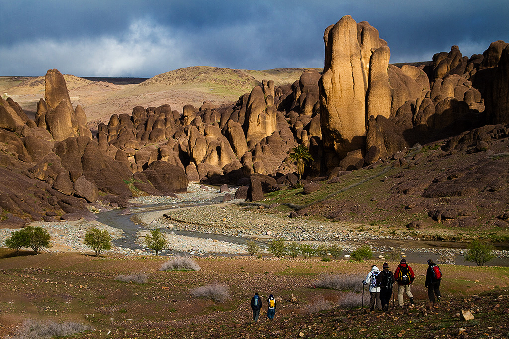 Le quatrième jour de notre randonnée nous conduira d’Assaka (1584 m) à Ighazoun (1250 m), en passant par une magnifique vallée ponctuée de petits villages tels que Tajalajt, Berkou et Tifdassine, où les habitants vivent modestement grâce à leurs troupeaux de chèvres et de moutons. Le déjeuner sera prévu à l’ombre des amandiers. Dans l’après-midi, nous passerons un petit col avant de descendre vers la vallée d’Ighazzoun où nous installerons notre campement pour la nuit. Cette étape nécessite environ 5 heures et demie de marche.