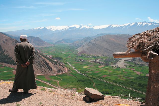 Le premier jour du voyage consistera en un départ à 8 heures de Marrakech, en direction d’Azilal, une ville montagneuse offrant un accès à une nature magnifique, ornée de majestueuses montagnes. Tout au long du trajet, nous pourrons admirer les beaux paysages qui caractérisent le Haut Atlas central, jusqu’à atteindre la Vallée d’Ait Bouguemez. Nous serez accueilli à la manière berbère avec un thé à la menthe, puis nous pourrons nous promener librement à travers les maisons et les champs du village de Timite. La nuit sera passée dans un gîte chez l’habitant, La durée totale de ce trajet est de 6 heures.